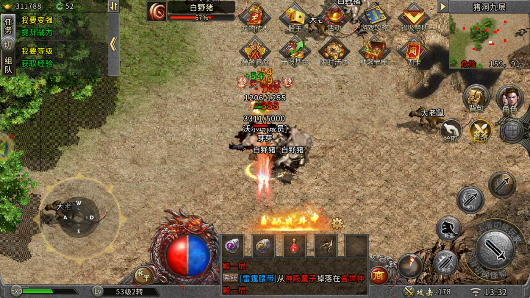 火龙套装还能和神器系统搭配,上古神器散落玛法大陆,集齐神器解锁专属技能和炫酷外观,战斗中触发神器特效,能轻松扭转战局。套装+神器的组合,让你在PK、攻沙、打宝中都能占据绝对优势,成为玛法大陆的强者,享受万人敬仰的荣耀!
